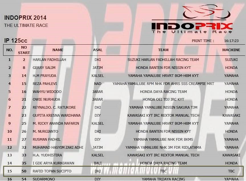 lanjutan nama pebalap indoprix 2014