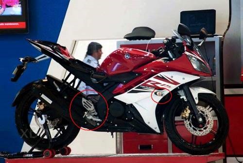 nah, yang menjadi perhatian pertamax7.com adalah kalau ini yamaha YZF-R15, entah itu R15 MMC india atau malah jadi R15 V3.0 , perhatikan, kok fotstep nya mirip banget dengan bakal calon R15 Indonesia yaK? seperti ini