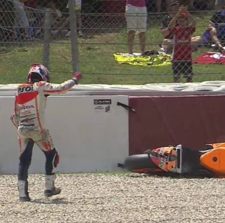 Gagal Pole Position 7 Kali berturut-turut, Marquez akui Crash karena kesalahannya sendiri » marc marquez Crash at Catalunia 2014 4