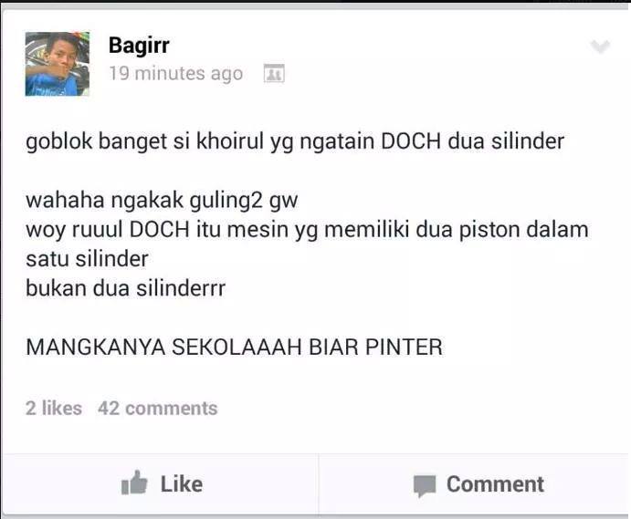 Sebut Honda CB150R DOHC artinya 2 piston Pemuda Ini Di Bully Luar Dalam Habis-habisan, Mulutmu Harimaumu….. » Joke CB150R DOHC itu 2 Silinder 20