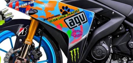 Desain Modifikasi Yamaha R25 bercorak Helm Kemenangan Valentino Rossi di Misano ala Julak Sendie ini pasti JOS Gandoz… » R25 Racing Misano SE_005