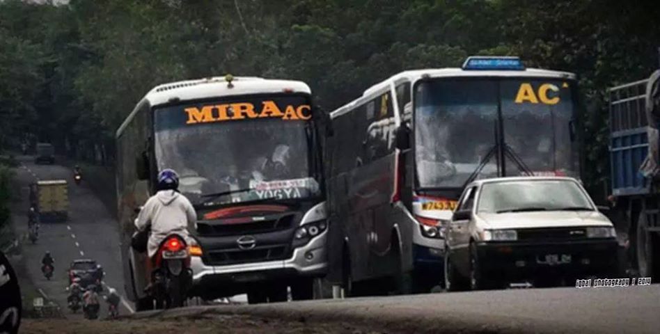 Geleng-geleng lihat Aksi Overtake Bus kayak gini, aku kudu piye? » Aksi Ngeblong nekat Bus antar provinsi 7