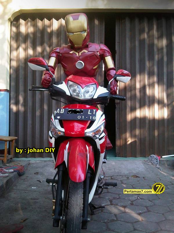 eh Ada Iron Man di Jogja, Naik Honda CS1 dan Supra » Model Kostum Ironman Made in Jogja naik Motor 10