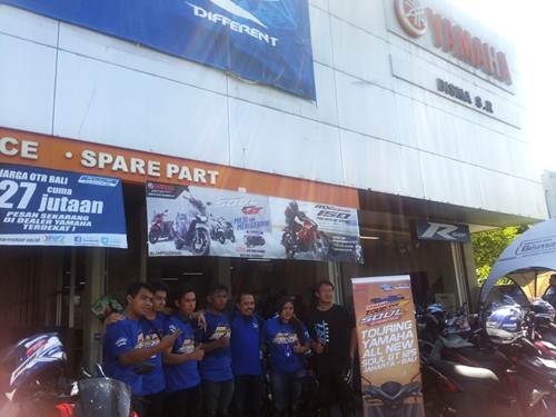 Yamaha All New Soul GT Sukses Jelajah 1500 km Jakarta Bali Sambangi 25 Landmark Tempat Wisata dan Wisata Kuliner, Enake…. » Peserta Tour de Soul naik All New Soul GT 125 di dealer Yamaha Bisma Sunset Road Denpasar Bali