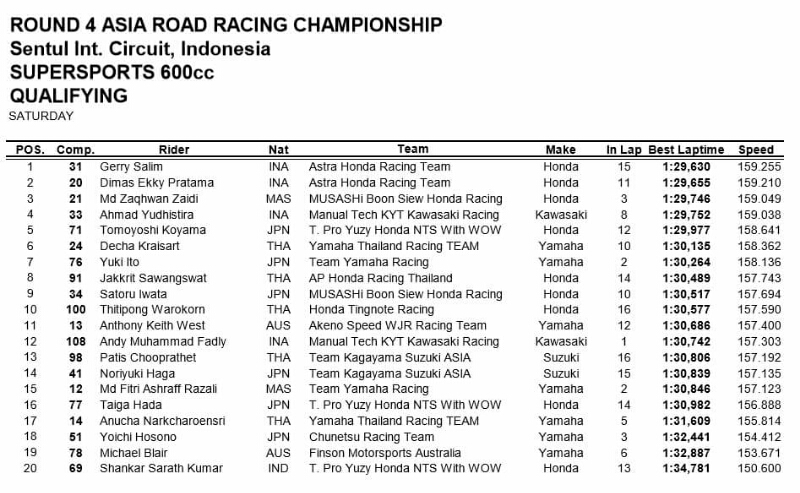 Pebalap Indonesia AHRT start terdepan kelas supersport 600 cc ARRC Sentul 2016 6 Agustus 2016