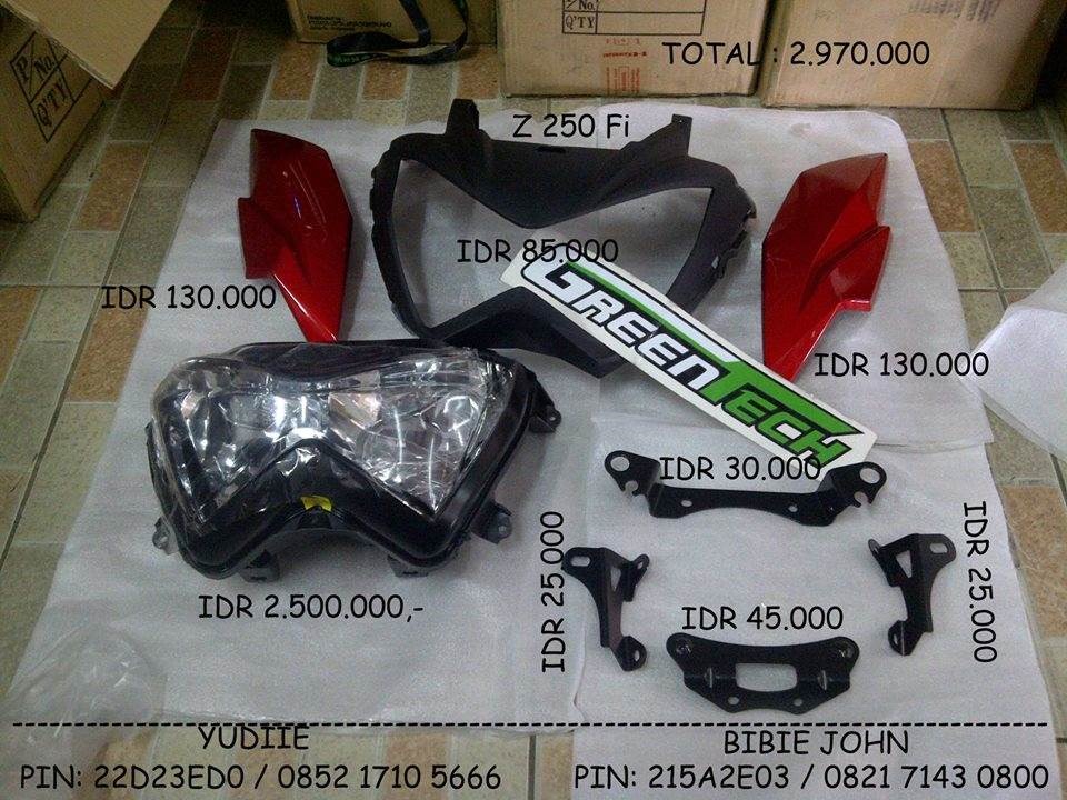harga total senilai Rp. dari pekanbaru riau, belum ongkir.. 😀 jadi buletin aja Rp. 3 jutaan…. sumbernya FB : kawasaki Greentech Parts