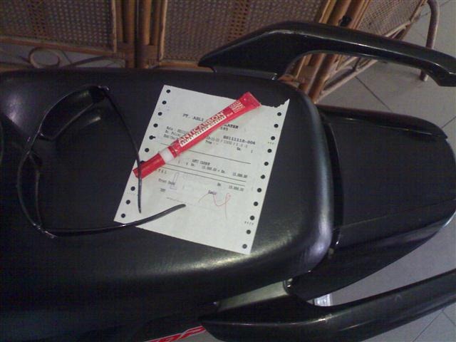 sepertinya, yang kuning itu suku cadang yang serupa dengan yang saya pakai..Setelah kampas kopling dikembalikan ke kampas kopling lama, si mekanik senior-pun mengembalikan uang pembelian dan meminta nota pembelian yang sebelumnya saya terima, tak lupa disertai permohonan maaf atas ketidaknyamanan yang saya derita.