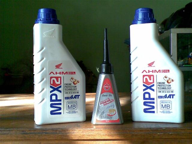ahm oil memang fenomenal, si oli encer yang mudah menguap ini koq jadi rekomendasi honda ya, heran ( oli MPX yang warna putih bru itu tuuuu atau putih merah )