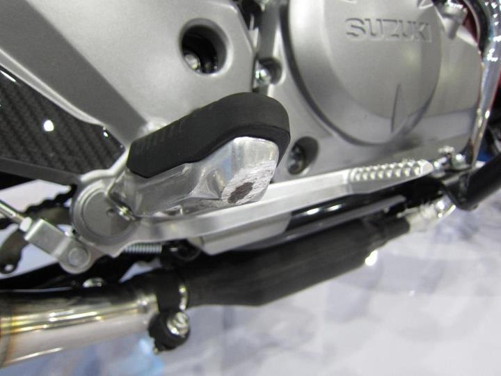 Kalau niat, silahkan naik ke lantai dua stand Suzuki. Ada dua pilihan warna yang dipajang. Hitam standar dan yang merah sudah dijejali beberapa variasi. “Variasinya dari Jepang,” kata Direktur Marketing dan Sales PT SIS, Paulus S Firmanto.