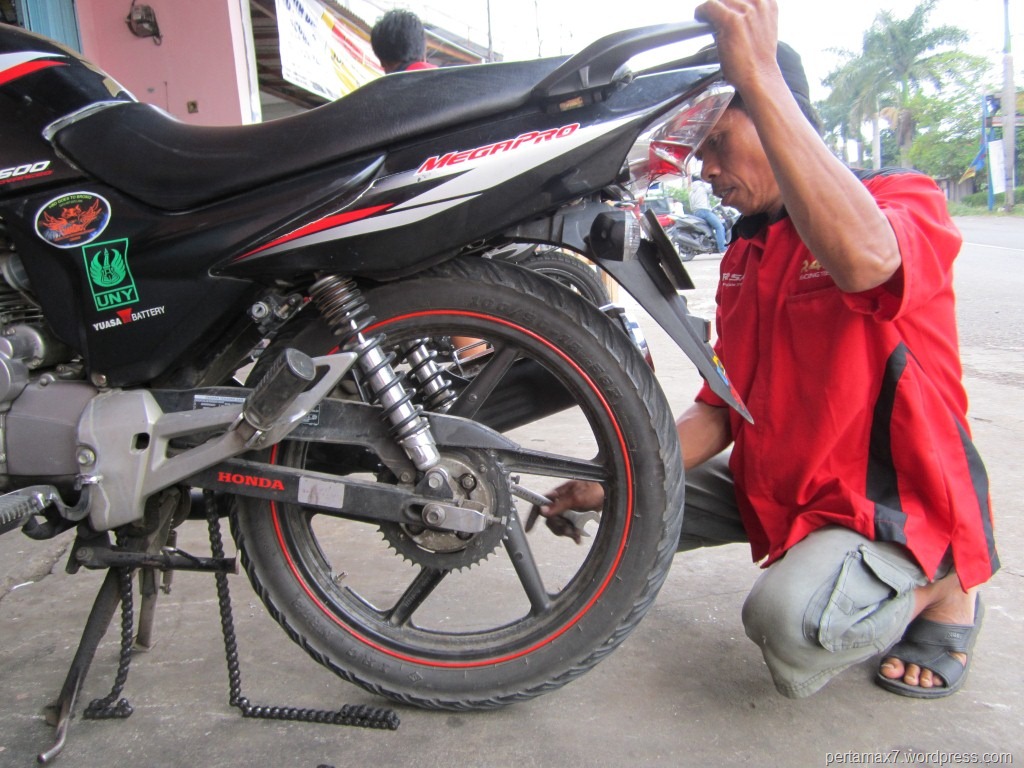 BAN belakang HONDA TIGER DI HONDA MEGAPRO , MEGISON GANTI BAN BELAKANG 8 Mei 2012