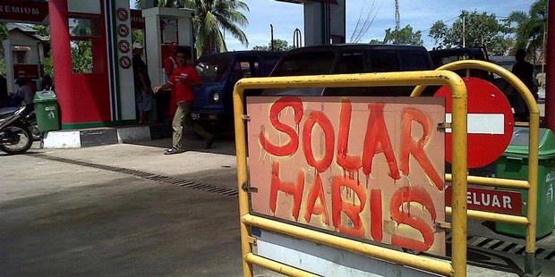 pas ane antri premium, di samping ane ada dispenser atau apa namanya punya solar, dan ada tulisannya, solar habis, dan ini banyak terjadi di spbu seterusnya.. owh kasus dan skandal solar langka masih lanjut gan