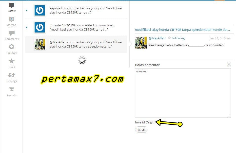 wordpress error bikin susah balas komentar, invalid origin 23 Februari 2013