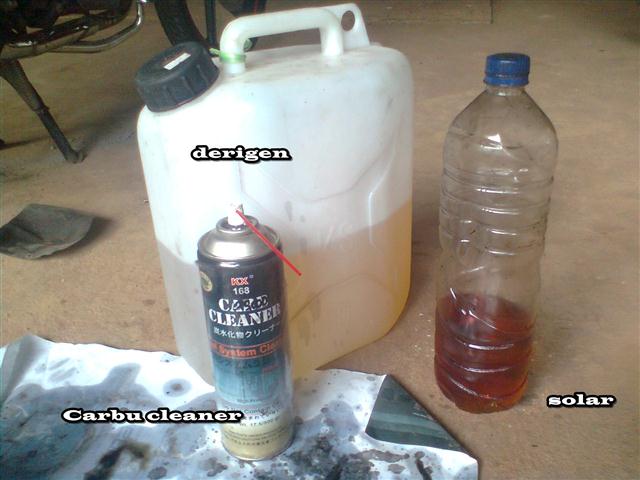 derigen plus yang lain, kalo carbu cleaner buat bersihin karbu, kalo solar buat nyuci busa filter