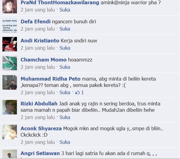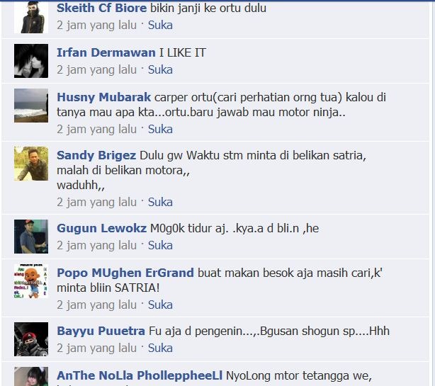 FU OH FU, pesonamu mematikan, bikin banyak anak di negara ini BERANI KEPADA ORANG TUANYA,,,,, ( yang salah pelakunya loo,,bukan motornya )… ( semoga nih blogger remaja nggak NGANCAM BUNUH DIRI BUAT MINTA SATRIA FU ), semoga saja