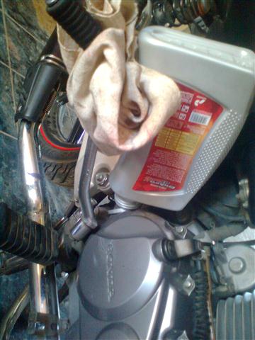 tuang oli baru ,,,,,sampe abis yaaaaaa
