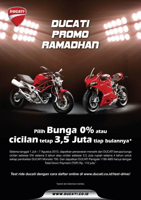 DUCATI PROMO RAMADHAN, kredit ducati Rp. 3,5 juta perbulan selama 4 tahun atatu bunga 0 % 18 Juli 2013