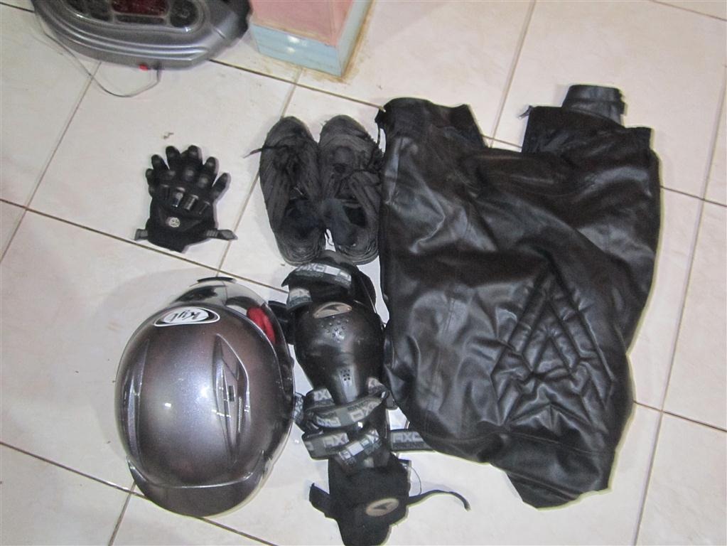 helm fullface, decker, gloves, sepatu walau bolong, jaket, menjadikan ane nggak menderita apa-apa, cuma kayaknya kaki keseleo nih,