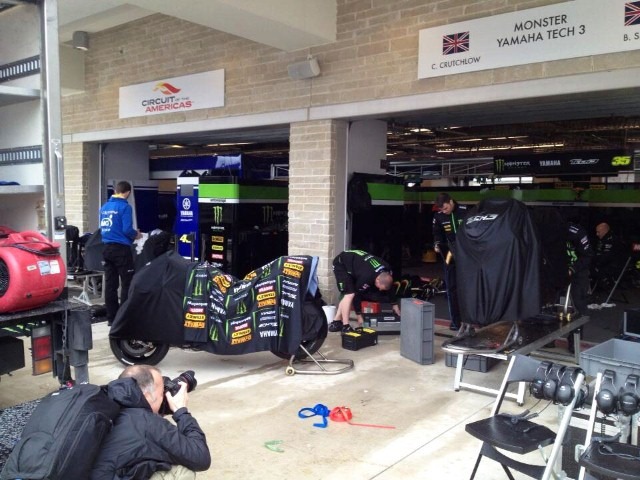 garasi team motogp tech 3 yamaha terbakar karena starting block konslet, yamaha M1 lorenzo dan rossi dibongkar 19 April 2013