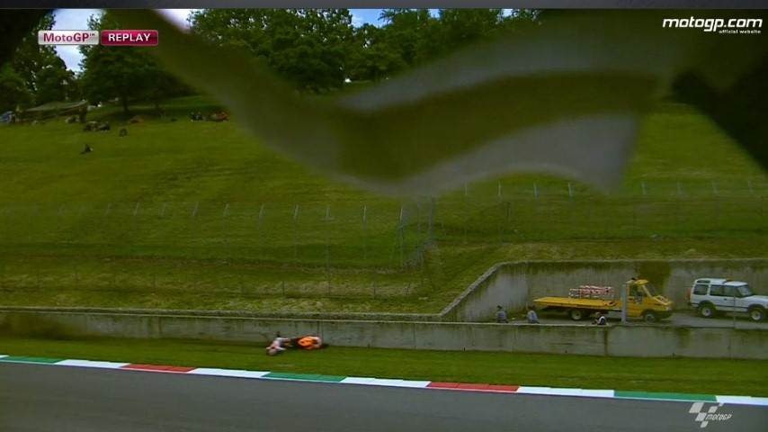 Marc Marquez terjatuh saat memacu motornya di kisaran kecepatan 320 km per jam di trek lurus Sirkuit Mugello, Jum’at (31/5) saat sesi latihan bebas (FP) 2 berlangsung.