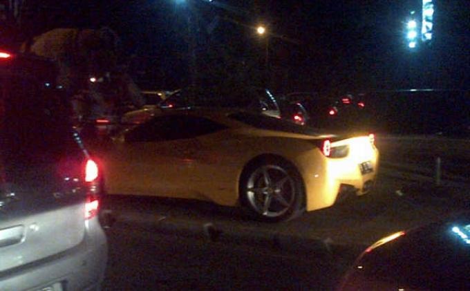 Ini dia mobil Ferrari nomor B 2 DIA menerobos busway Jalan S Parman, Jakarta Barat (wartakota)