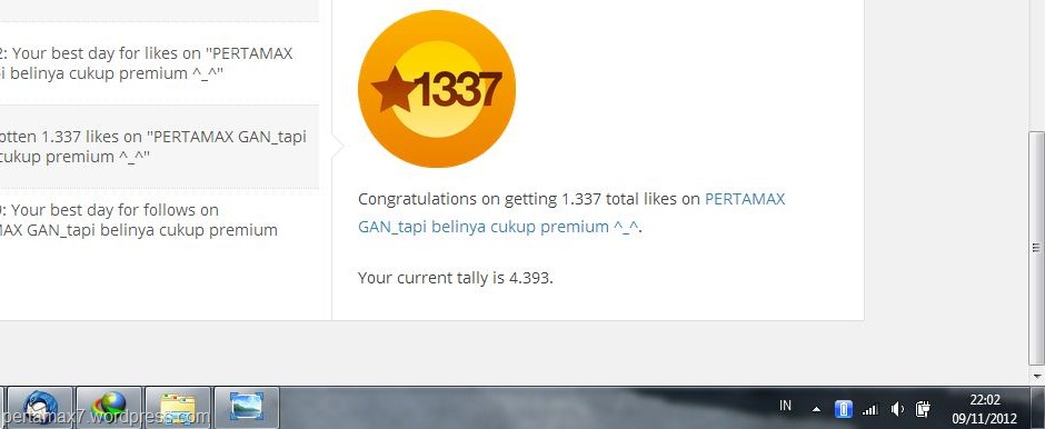 pertamax7 tembus 1337 likes, thanks gan, ALhamdulillah yach :D 10 November 2012